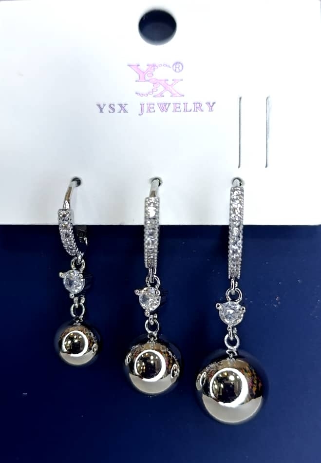 گوشواره سه تایی آویزدار نگینی طرح توپکی