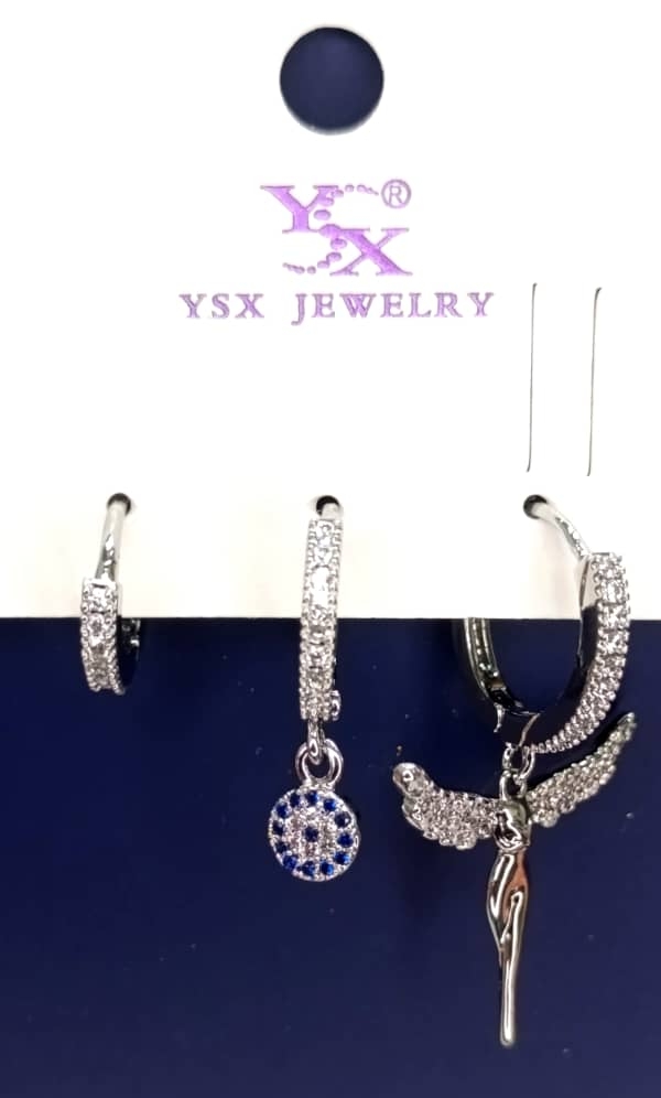 گوشواره سه تایی نگینی طرح دار آویزدار