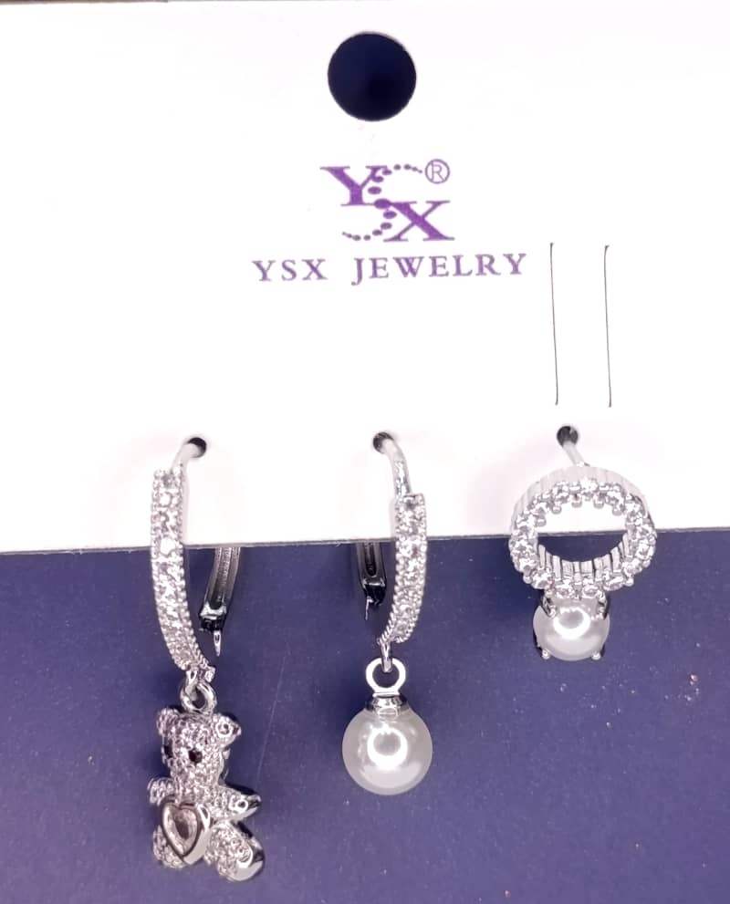 گوشواره سه تایی نگینی آویزدار طرحدار توپکی و خرسی