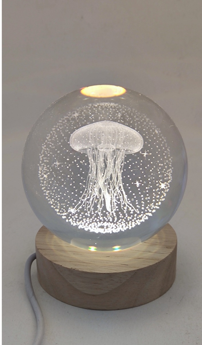 گوی کریستالی پایه چوبی سایز ۱۰ طرح عروس دریایی