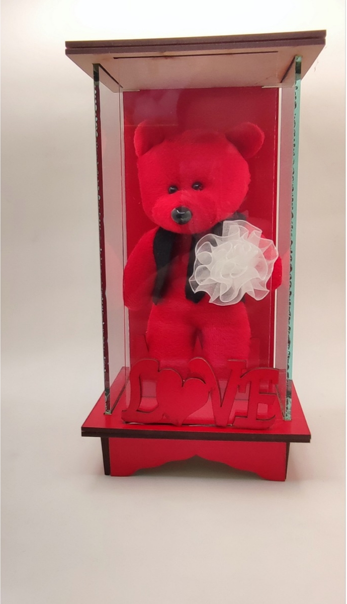 عروسک خرس پایه چوبی و قاب شیشه ای طرح Love مناسب هدیه