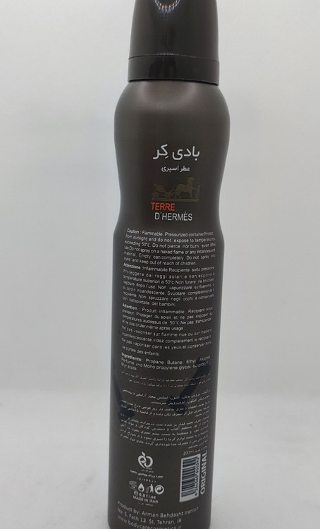 اسپری بادی کر با عطر Hermes با حجم ۲۰۰ میلی لیتر مناسب آقایان