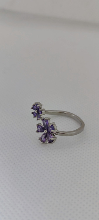 انگشتر نگینی رنگ ثابت با طرح شکوفه های بنفش
