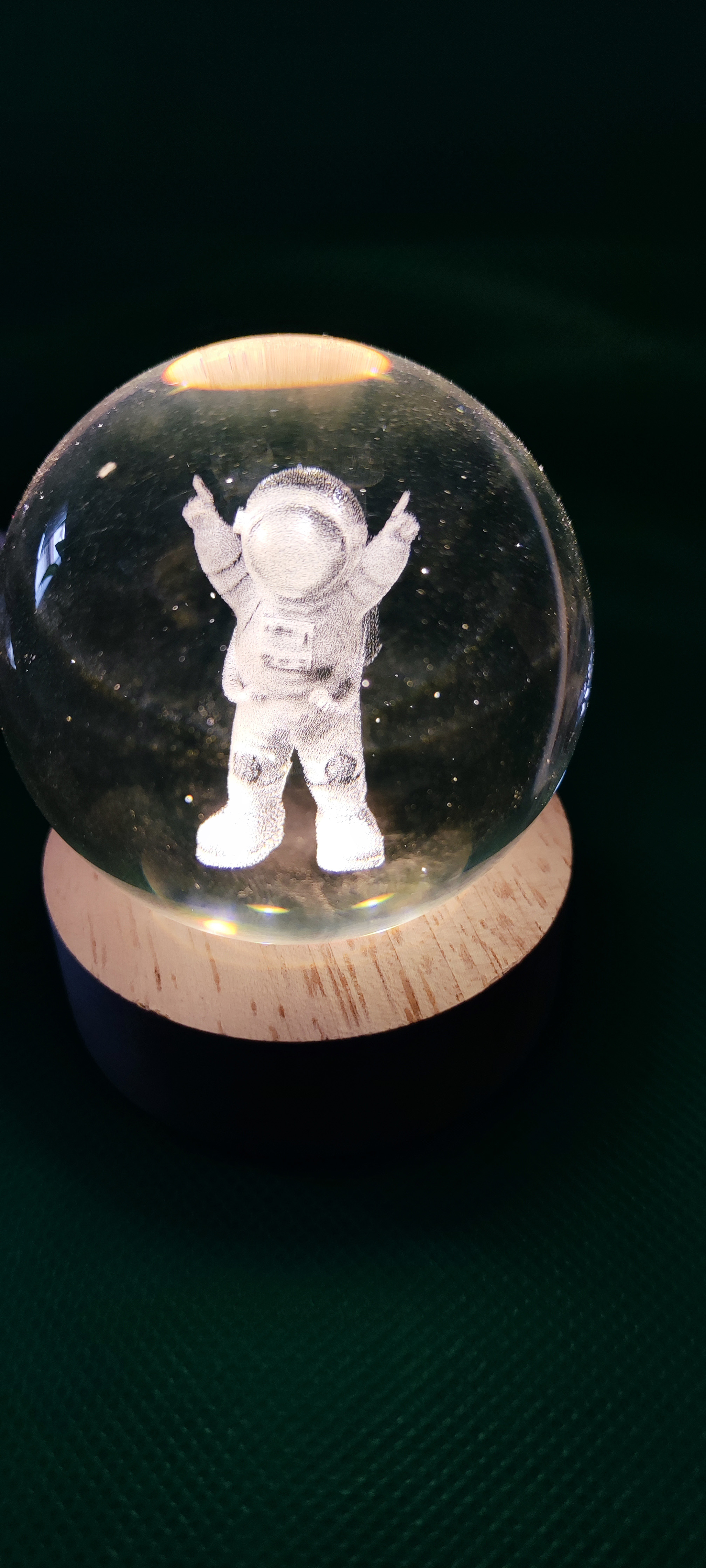 گوی کریستالی پایه چوبی طرح فضانورد