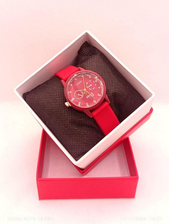 ساعت مچی عقربه دار قرمز مناسب برای ست شب یلدا همراه با جعبه