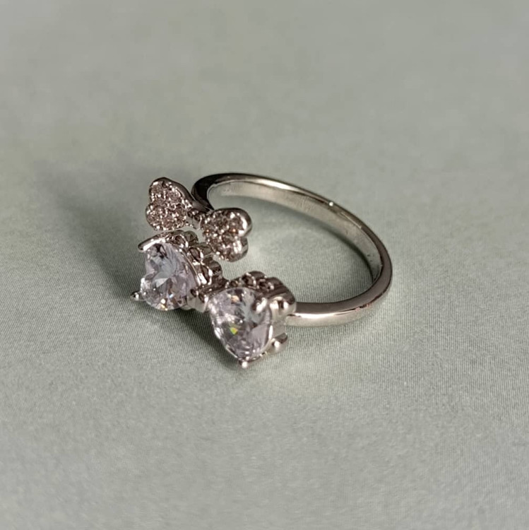انگشتر نگین دار نقره ای رنگ با طرح پاپیون دوتایی و رنگ ثابت