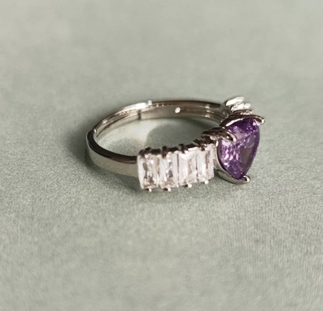 انگشتر نگین دار طرح قلب بنفش با رنگ ثابت