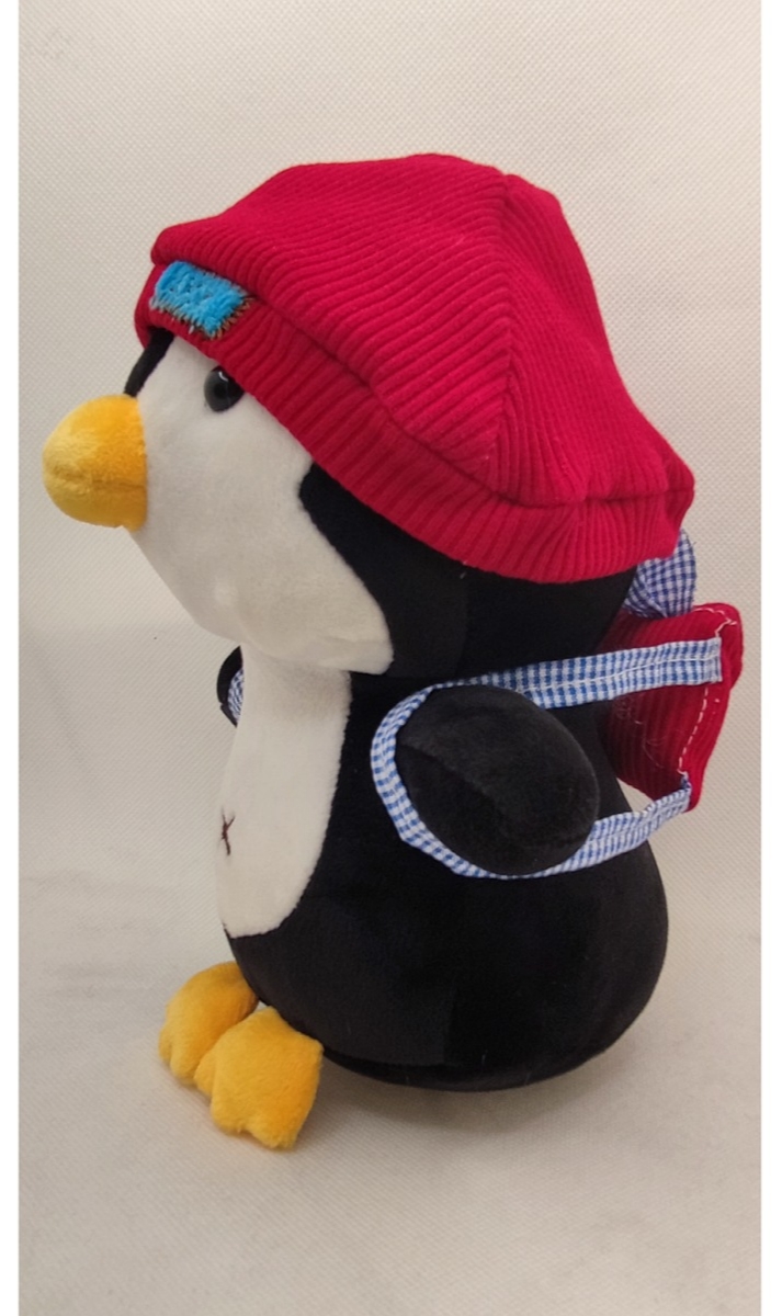 عروسک بچه پنگوئن دانش آموز با کلاه و کوله پشتی
