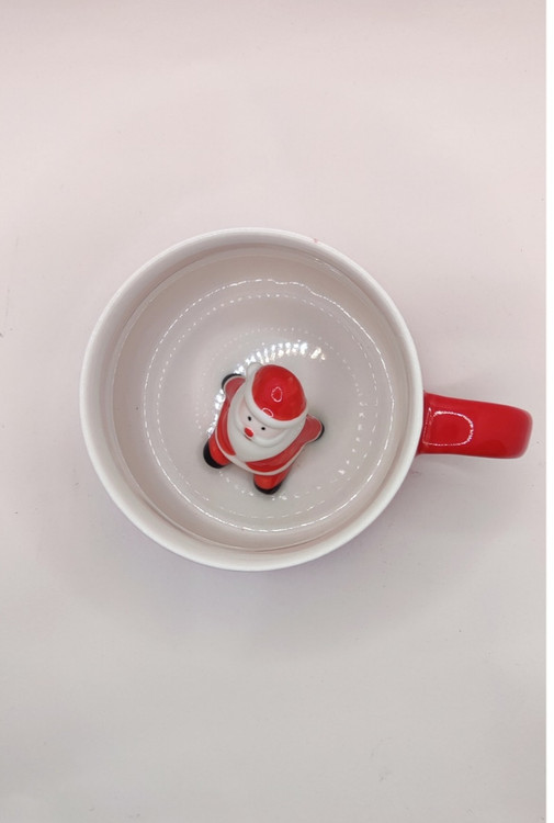 ماگ سرامیکی دسته دار قرمز با فیگور بابانوئل داخل ماگ