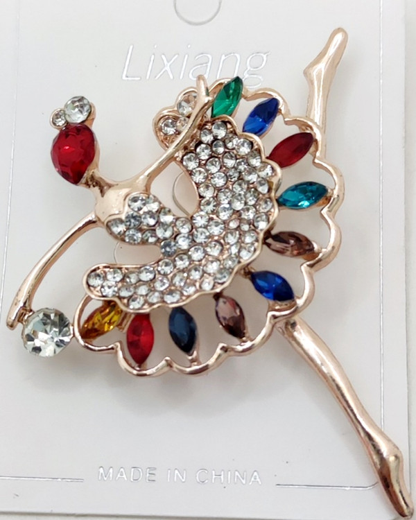سنجاق سینه نگین دار طرح رقص باله با نگین ده رنگ براق