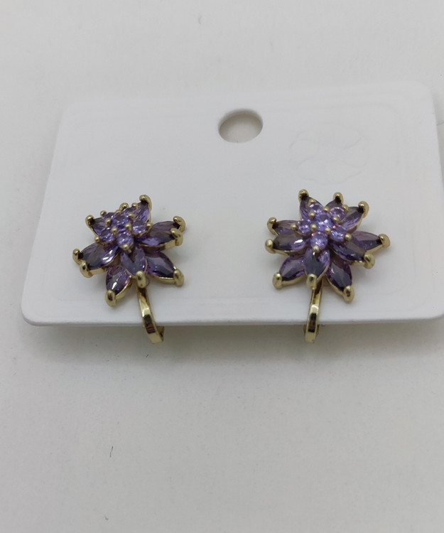 گوشواره قفل چفت دار طرح شکوفه بنفش نگین دار براق
