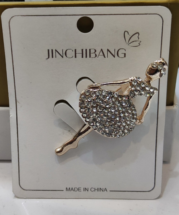 سنجاق سینه نگین دار براق طرح بانوی با لباس باله