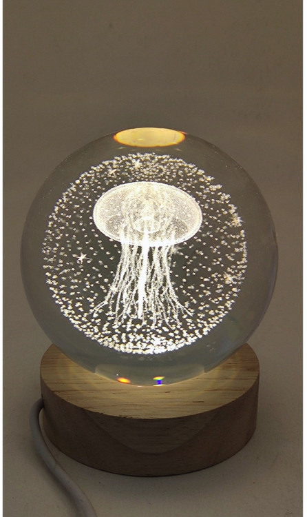 گوی کریستالی پایه چوبی سایز ۱۰ طرح عروس دریایی