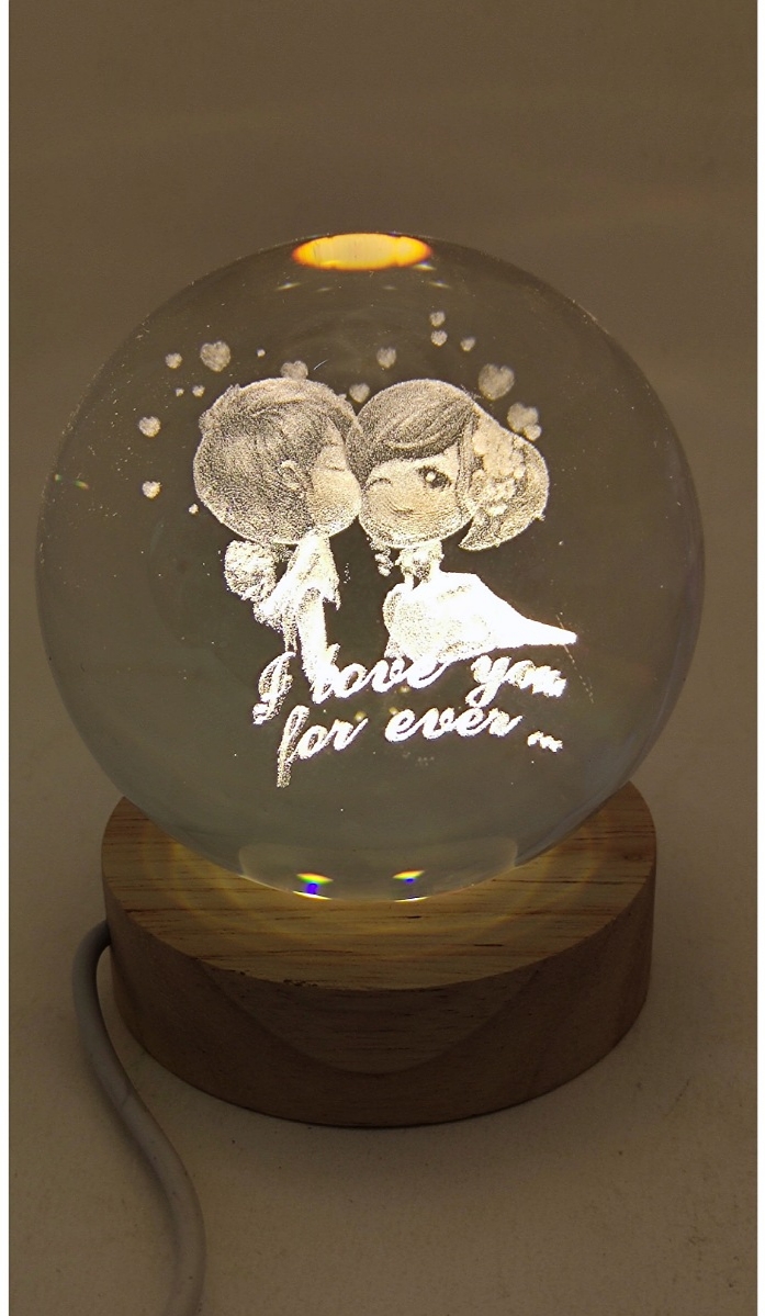 گوی کریستالی پایه چوبی سایز ۱۰ طرح دختر و پسر i love you forever