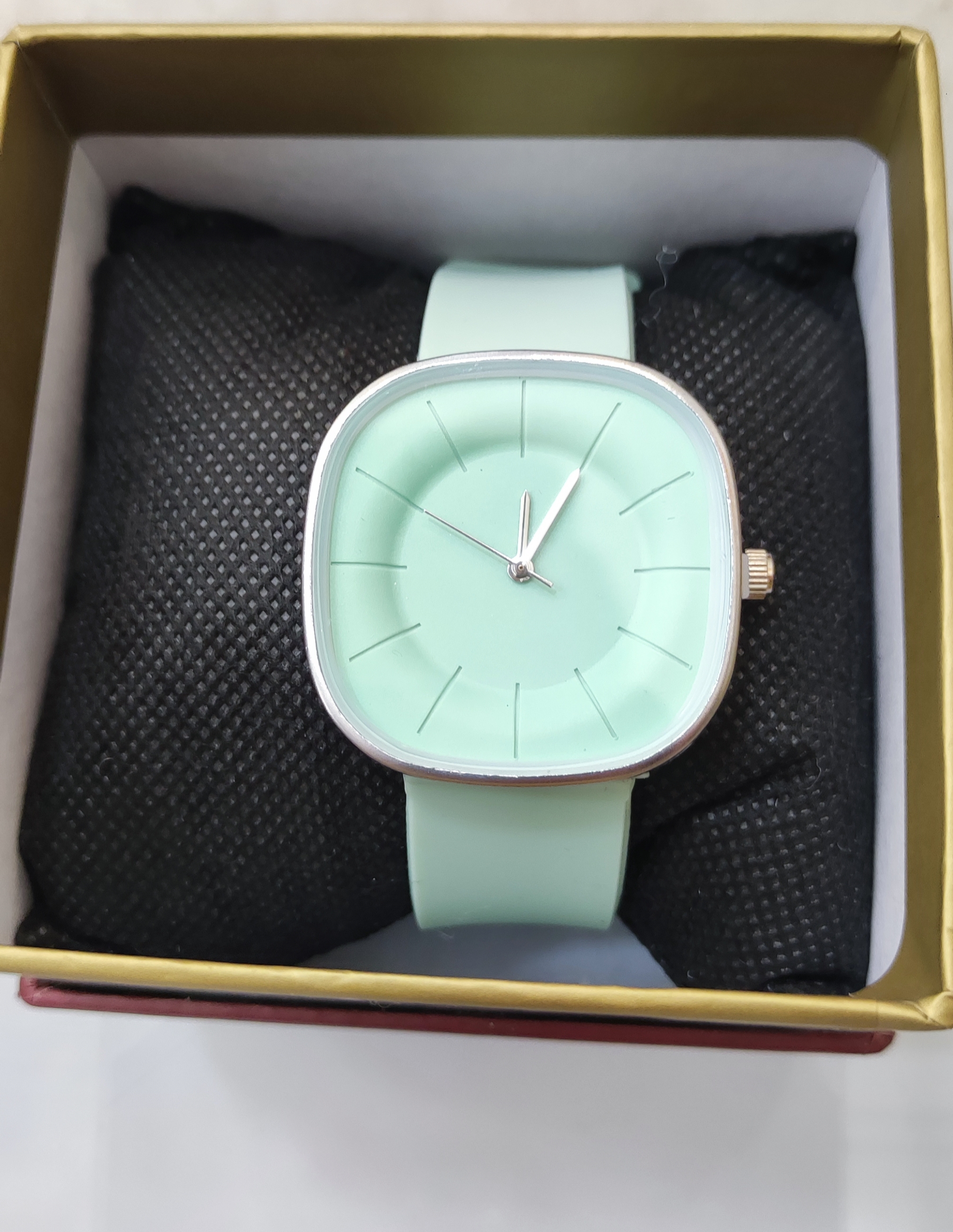 رنگ بند و رنگ صفحه ساعت سبز روشن می باشد