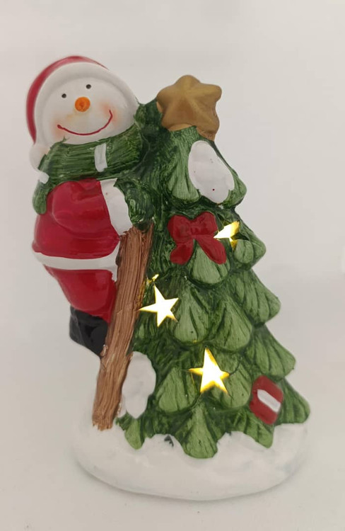 مجسمه دکوری آدم برفی و کاج کریسمس سایز متوسط با قابلیت روشن شدن ستاره های درخت